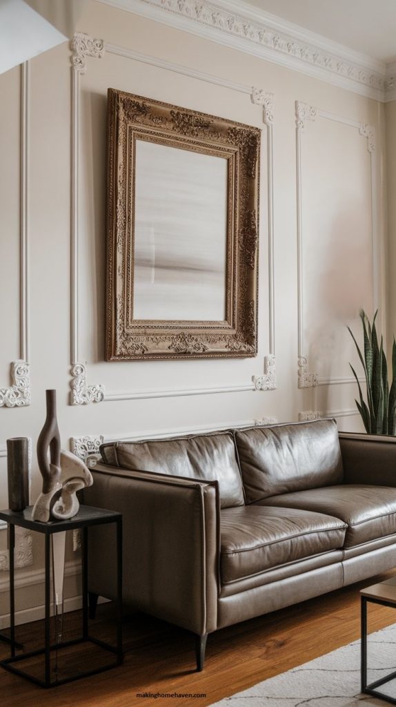 Mixing frames above your sofa adds charm to your living space. Use natural wood, metal, and colorful frames for a unique look. Each style adds texture and interest, making your wall decor stand out.
