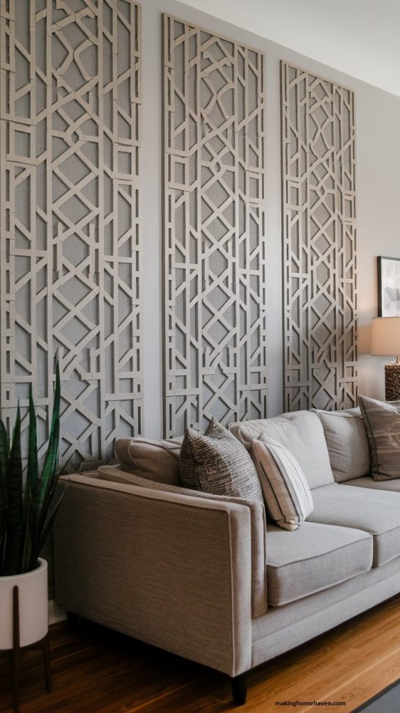 This DIY project turns your space above the sofa into a talking point. You get to pick the colors and designs, making it truly special. Adding layers and textures can make it even more interesting.