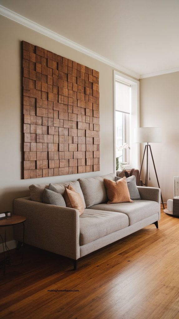 Adding a big wood carving above your sofa can make your living room feel warmer. Choose carvings that show nature or cultural themes. This makes the piece fit your style. The wood’s natural look adds beauty and makes the room feel calm and welcoming.