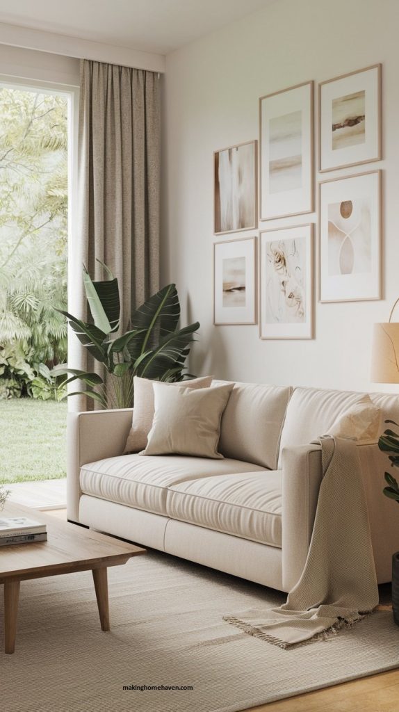 Creating a modern art collection with neutral tones makes your space look chic and sophisticated. Pieces with soft textures and calm colors go well with many furniture styles. This mix creates a simple yet elegant look in your room.