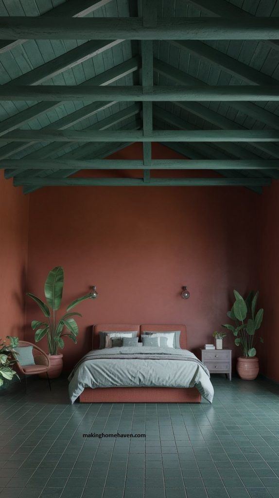 A dark green ceiling can make your room feel dramatic and cozy. Follow these tips to make your bedroom a peaceful place for love and rest.
