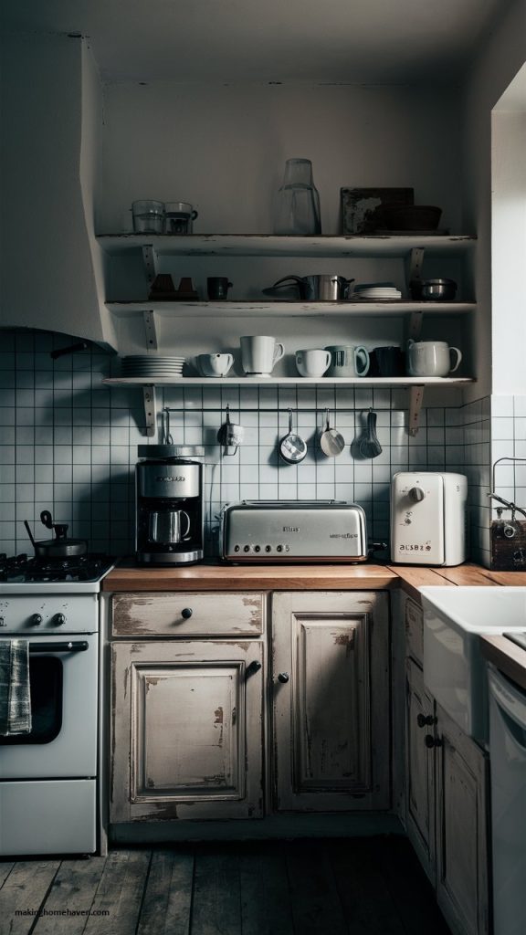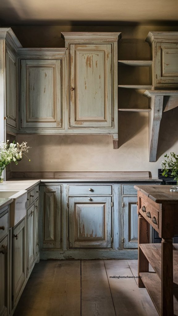 Distressed cabinets give your kitchen a vintage look. They add depth and history to your space.