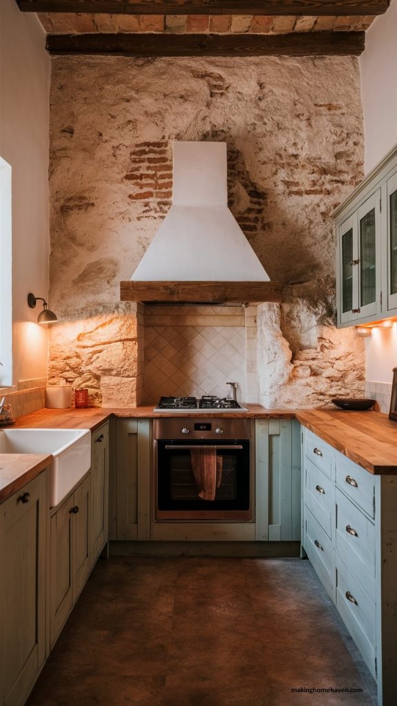 Stone or brick walls add texture and beauty. They ground your kitchen in rustic charm.