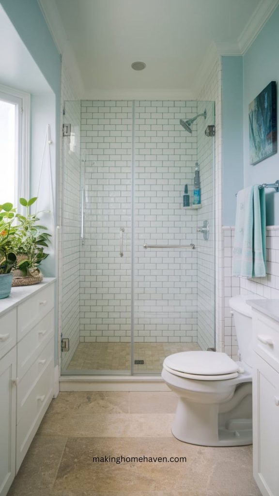 With some creativity and a little bit of planning, you can transform your cramped bathroom into a coastal oasis of serenity. To enhance the coastal theme, select a soothing color palette inspired by the ocean. Shades of blue, green, and sandy beige create a calming ambiance reminiscent of a beach getaway. Incorporate these hues through accessories like shower curtains, towels, and rugs to add a pop of color to your small bathroom.