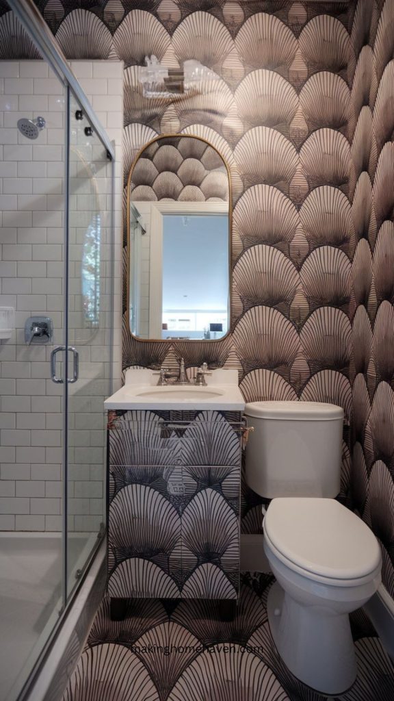 Want to turn your small bathroom into a magical place? Themed vintage glamour is the way to go. It brings back old times and adds depth to your space. Think about using vintage-style wallpapers or old-school fixtures like Art Deco or Mid-Century Modern.