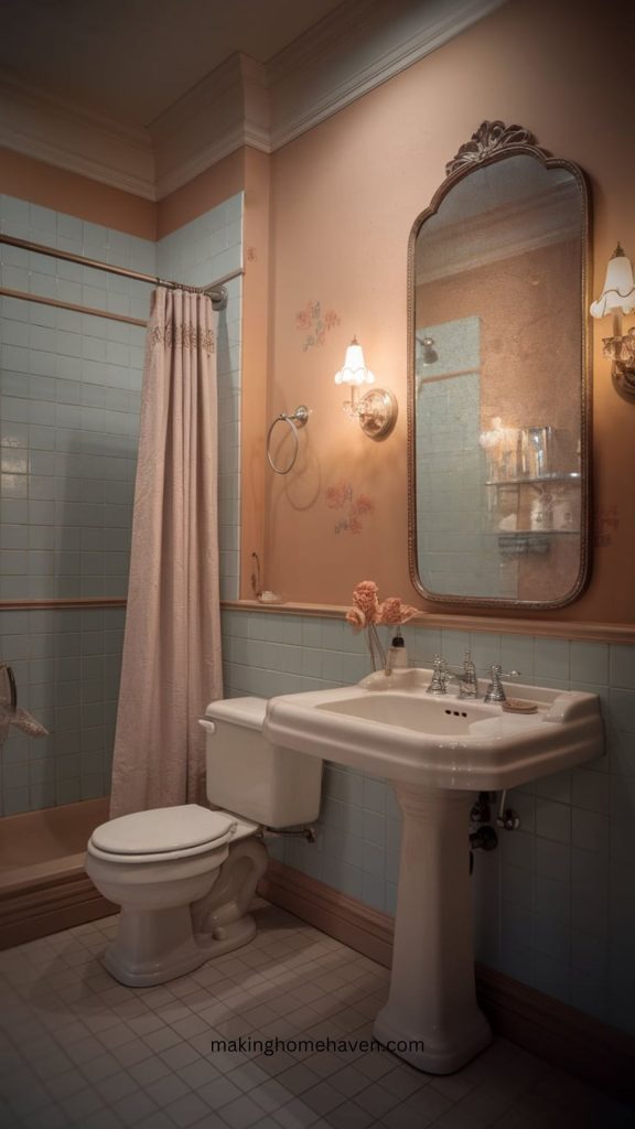 This style sets the stage for your decor. It makes your bathroom feel welcoming. Adding antique mirrors can make the room look bigger and more elegant. Velvet curtains or plush towels add luxury and comfort.